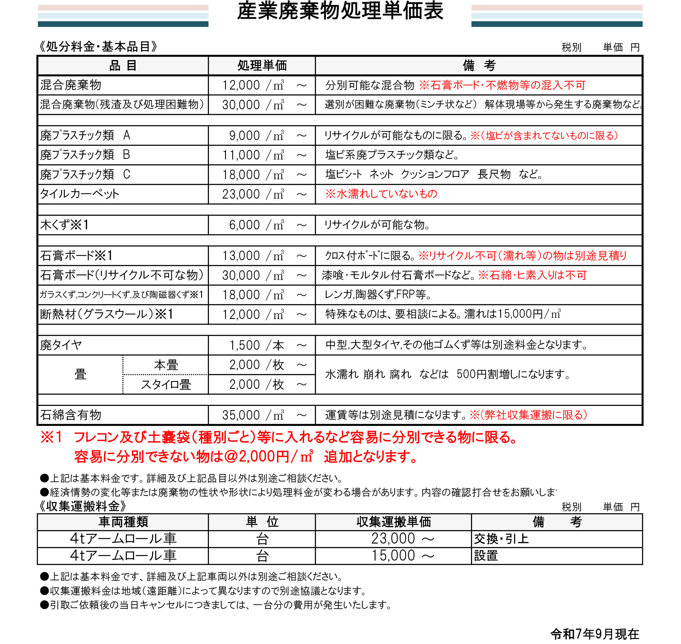 - 当社運搬車両によりお引き取り